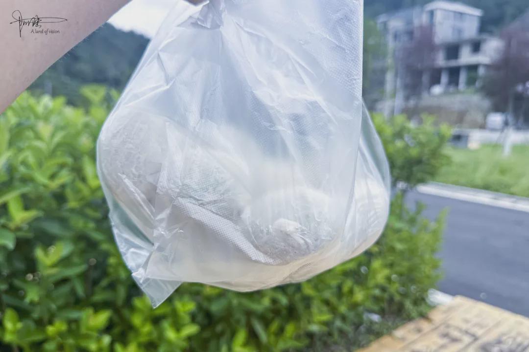因为所在位置毕竟是山区,所以预报相当不准,连绵的雨水毫无停止迹象,但凡远处有一团较大的雾气袭来,空中就会飘洒下水珠。于是我也干脆开启了摆烂模式,不仅在这里用手机APP买菜买补给,还买了几样秋冬装备(这次降温有点快,刚好在这里未雨绸缪一下),反正有水有电可以“打持久战”。结果在这个等待的过程中,竟然又遇见一位热情的恩施本地帅哥,本来谈天说地好好的,却只因为我好奇的一问,就被投喂了这样一袋“土家秘制水晶皮蛋”。