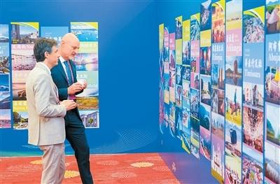 外国嘉宾参观“魅力丝路 联通世界——丝绸之路旅游城市联盟主题展”。 主办方供图