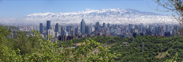 雪山映衬下的乌鲁木齐市景观。闫鹏 摄