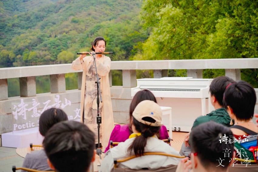 除了深度的文化分享,诗会更以多元的艺术形式呈现秋之美。著名竹笛演奏家、中央音乐学院范临风老师演奏《欢乐歌》,清越悠扬的笛声宛若鹤鸣碧霄;青年女高音歌唱家柯绿娃与钢琴家、中央音乐学院张佳佳副教授合作演绎《秋风词》,为诗会增添了动人旋律;青年演员孔冉深情的朗诵,让刘禹锡、杨万里有关秋日的经典诗篇与郁达夫《故都的秋》在石景山的山水之间焕发新的生命力。大家也在声韵与文字里沉醉,仿佛收到了一份独属于秋日的心灵礼物——是对美好事物的感知力,也是对自我内心的温柔关照。