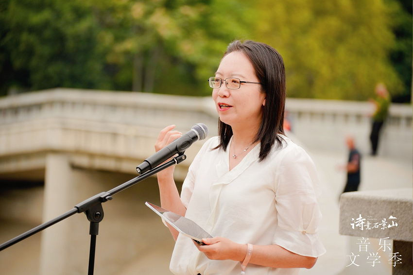 北京大学美学与美育研究中心研究员、建筑与景观学院副教授李溪为诗会带来题为《“秋”与中国的抒情传统》的文化分享。她从石景山区的山水意境出发,深入解读了中国文人与自然之间深厚的精神联结,引导观众思考秋天对中国人精神世界的深刻塑造。“我们要从秋日的伤感和对人生短暂的慨叹中超脱出来,领悟生命本真的坚韧,”李溪分享,“用心感受每一个当下的喜悦,这正是中国儒家精神的重要传承。”