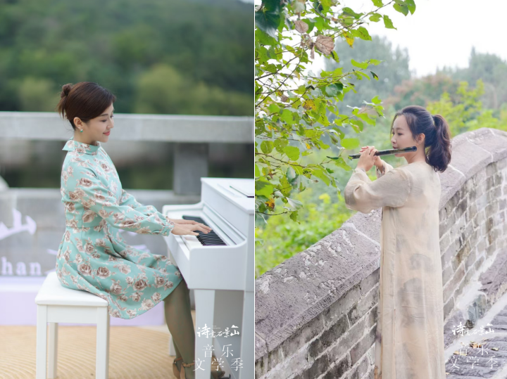 左:钢琴家、中央音乐学院张佳佳副教授深情弹奏。右:著名竹笛演奏家、中央音乐学院范临风老师以笛问秋,清越悠扬的笛声宛若鹤鸣碧霄。