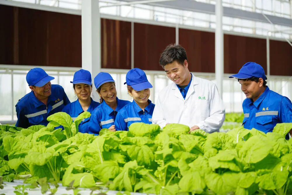 在新疆阿克苏地区库车市甬库同心村智慧农业植物工厂,技术人员在培训当地的农业产业工人。