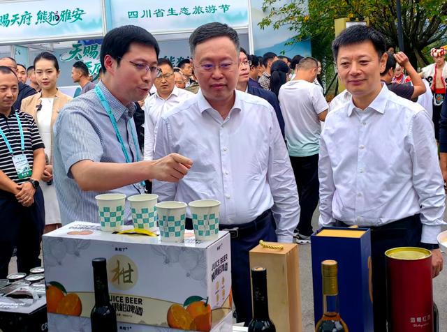 开幕式前,雅安市委书记廖文彬(右一)等巡展 王建明摄