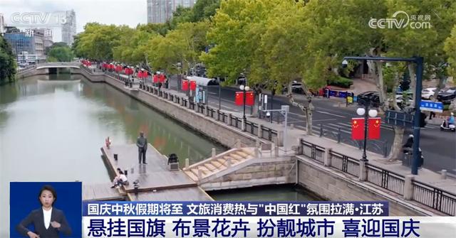 同样,这几天,江苏多地也在打造浓浓的节日氛围。在南通濠河边,鲜艳的国旗像一簇簇跳动的火焰,与濠河的粼粼波光、两岸的绿树葱茏交相辉映,构成了一幅流动的“中国红”画卷。