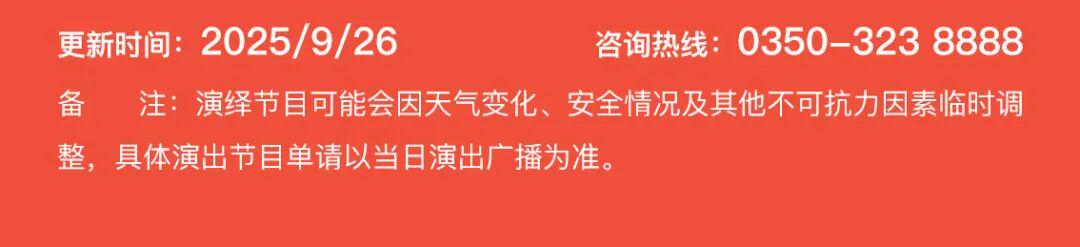 晋北民俗表演每日轮流演出,地道山西调儿!年代老戏台、传统曲目,一秒穿回旧时光,感受原汁原味民间艺术。