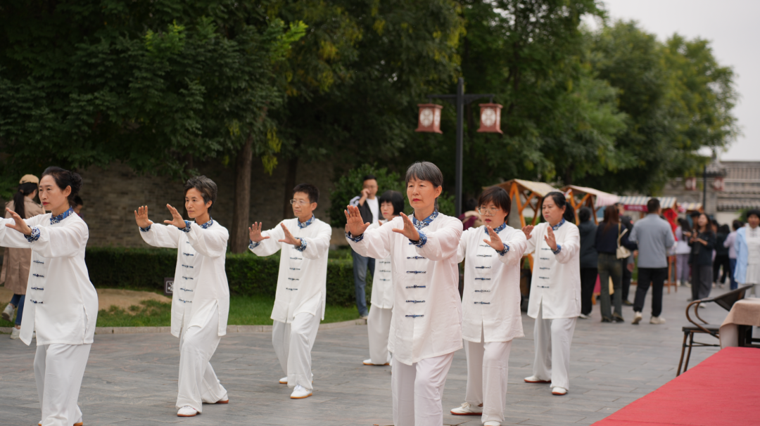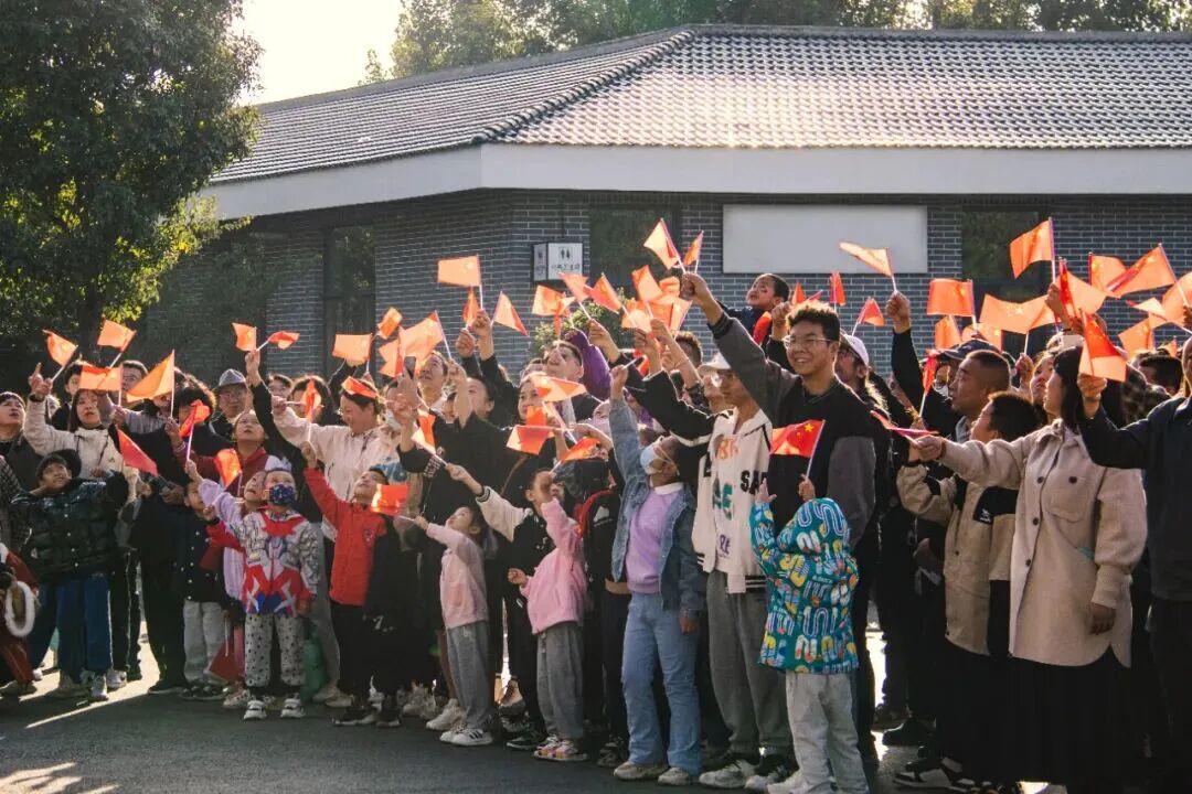 国庆第一天,早8:00,古城员工、商户以及市民、游客齐聚忻州古城土稍门,迎着朝阳,共同见证五星红旗冉冉升起的庄严时刻。