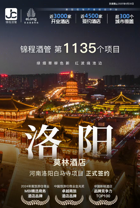 2025 年 7 月,莫林酒店正式签约洛阳白马寺项目,打造品牌进驻洛阳的首家门店。作为艺龙酒店科技平台锦程酒管旗下主力品牌,莫林此次布局不仅是其深耕中原文旅市场的关键一步,更依托平台全链路资源优势,为填补区域住宿空白注入强劲动力 ,依托艺龙酒店科技 3000 万优质商旅会员体系、以及平台全方位的赋能,全维度为门店筑牢根基,精准承接白马寺的文旅消费需求。
