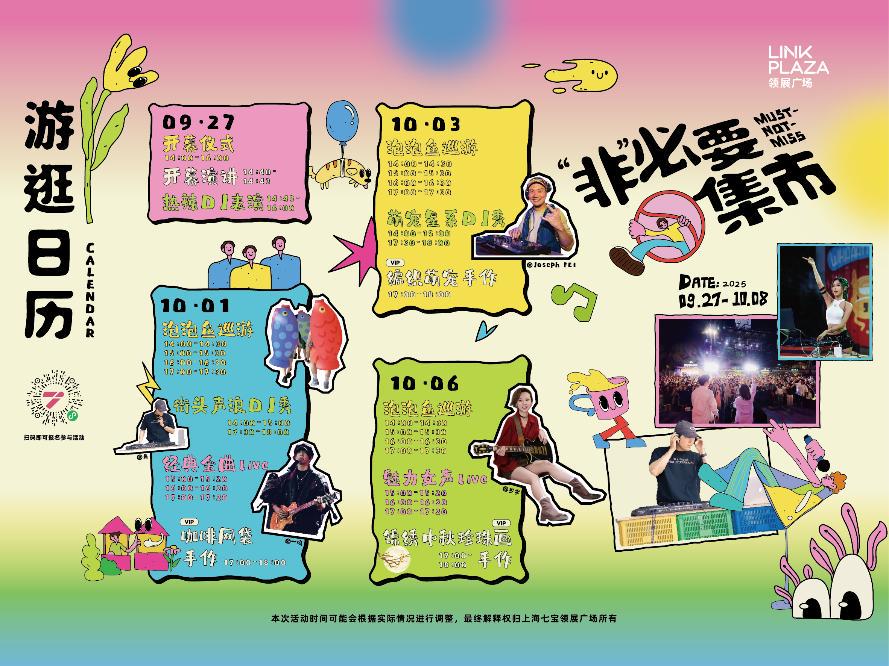 9月27日,由上海七宝领展广场倾情打造的「“非”必要集市」活力开启,活动将连续举办12天,完整覆盖国庆假期。市集现场不止提供琳琅满目的创意商品与精彩纷呈的表演,更致力于为消费者打造舒适无忧、品质卓越的假期社交新体验。