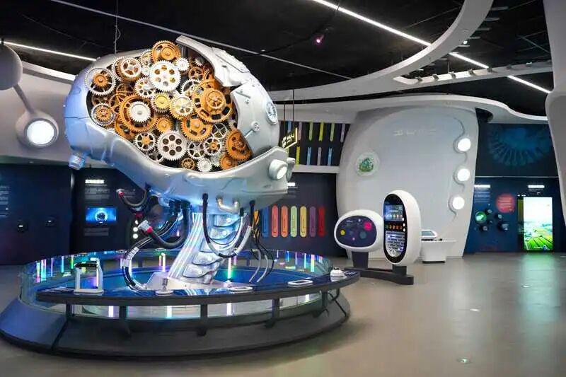 它的“新”藏在细节里:四大常设展厅、950个创新展项,数量稳居国内科技馆前列,全程能动手、够沉浸。五楼“宇宙探源”是娃的最爱!VR+全息投影带你“登火箭”“踩月球”,量子世界触手可及,沉浸式体验拉满;四楼“智慧产业”全是深圳硬核实力,新能源设备、机器人、迷你灯塔工厂近距离可见,自豪感爆棚;三楼“美好生活”展现未来日常,AI大模型、人形机器人规划生活场景;二楼适合小娃解锁数字文明,一楼4D影院座椅晃、风雾扑脸,知识变超震撼。