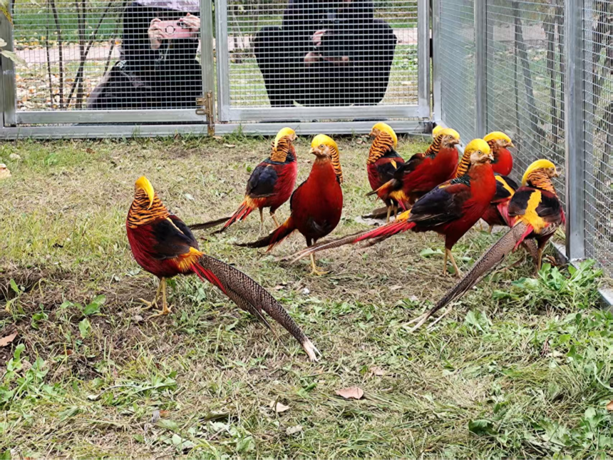 国家二级保护动物红腹锦鸡安家天鹅湖畔。红腹锦鸡有着“鸟中凤凰”的美誉,雄鸟羽色尤为艳丽:头顶金黄色羽冠,宛如戴了顶华丽的皇冠;背部翠绿闪光,腹部则是鲜艳的朱红色,跑动时像一团流动的火焰。