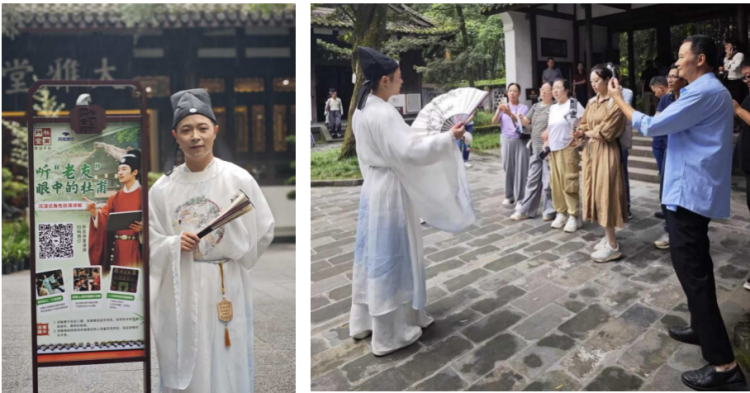 同程旅行NPC讲解员在杜甫草堂为观众提供讲解服务。图源 同程旅行