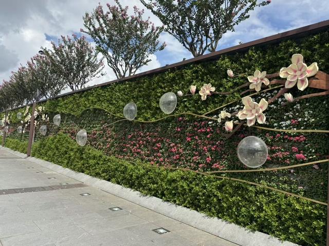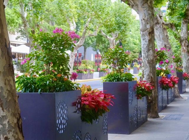 布置手法上,各区灵活运用立体花坛、街边花境、主题景点、组合容器与灯杆花球等多元形式,融入国庆主题标识等设计内容。在色彩搭配上,延续国庆特有的红黄主调,并巧妙融入粉、紫、橙等辅助色,营造出温暖热烈、和谐明快的视觉氛围。