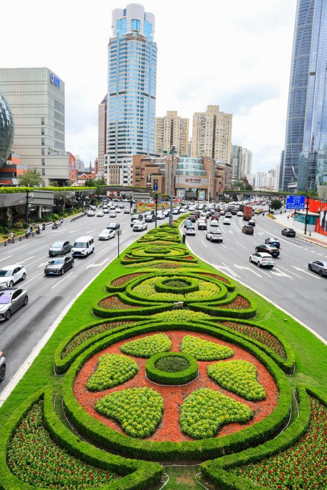 今年国庆花卉布置以“重点区域+主要道路”为框架,覆盖人民广场、外滩、陆家嘴3大市级核心区域,辐射静安寺、徐家汇等8个市级重点区域,串联延安路、世纪大道等12条重要道路,形成点线面结合的节日景观网络。