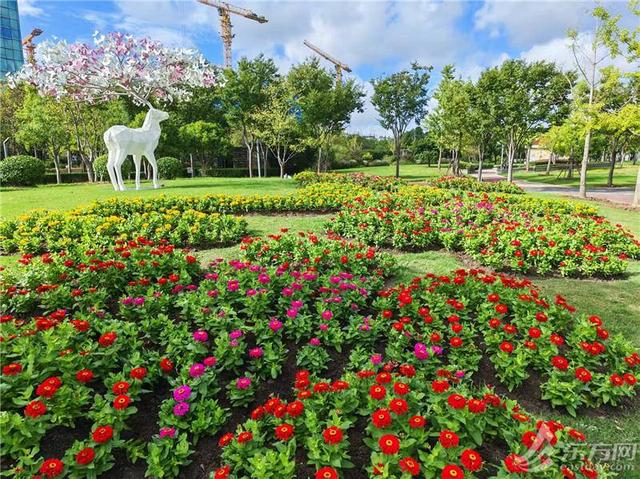 在布置手法上,各区灵活运用立体花坛、街边花境、主题景点、组合容器与灯杆花球等多元形式,融入国庆主题标识等设计内容,构建出层次丰富、动静结合的城市景观界面。色彩搭配延续国庆特有的红黄主调,并巧妙融入粉、紫、橙等辅助色,营造出温暖热烈、和谐明快的视觉氛围。花卉选材兼顾经典与创新,除保留一串红、鸡冠花、孔雀草等传统品种外,醉蝶花、球菊等新优花卉也纷纷亮相,既体现季节特色,也展示出上海在花卉育种与应用方面的持续进步。