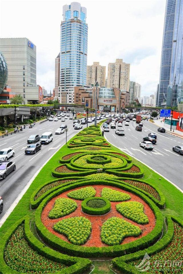 今年国庆花卉布置继续以“重点区域+主要道路”为框架,覆盖人民广场、外滩、陆家嘴3大市级核心区域,辐射静安寺、徐家汇等8个市级重点区域,串联延安路、世纪大道等12条重要道路,形成点线面结合的节日景观网络。据统计,今年国庆全市共打造主题景点75个,布置花坛花境约18万平方米,设置组合容器7.5万余组。