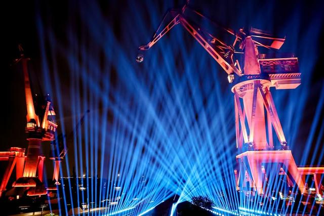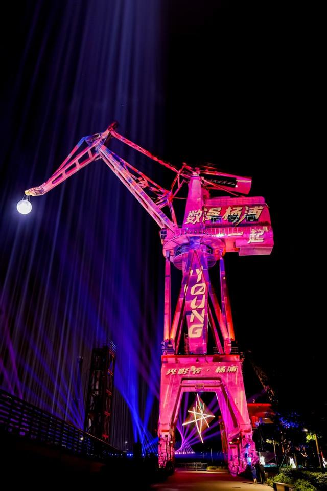 昨晚,以光为笔、以夜为幕,建于1973年的120吨塔吊成为“显眼包”。一场融合科技、艺术与青春的光影盛会——第二届上海国际光影节杨浦分会场在复兴岛船台公园开幕,3D Mapping光影秀《百年光潮》以充满工业气息的塔吊为投影“幕布”,光影在钢铁骨架间流动,配合动感激昂的旋律,以赛博朋克式的炫酷表演,串联起黄浦江的潮涌与城市的变迁,生动讲述杨浦从工业文明迈向数字未来的壮阔历程。震撼的视觉呈现赢得现场阵阵掌声与由衷赞叹,一位业内人士评价说:“杨浦滨江从‘工业锈带’发展为‘生活秀带 ’,今晚我们又看到了‘数字炫带’,复兴岛的蜕变正是杨浦区活力与想象力的最佳证明——年轻、澎湃,永远敢想敢做!”