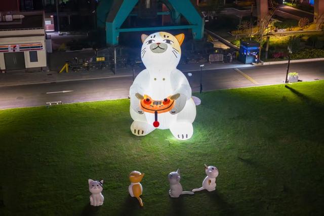 今天,2025上海城市空间艺术季主展区在复兴岛开幕。昨晚,塔吊下一只近10米高的猫咪气膜已与市民见面,自带反差萌的氛围感吸引了许多人打卡留念。这只猫咪就是率先登场的上海2025城市空间艺术季展品——艺术家Tango的作品《猫的频道》。在船台公园滨江步道,还布置了艺术家塔吊光影装置“星蕴”“量子能量环”以及“YOUNG”主题灯牌,还有杨浦区中小学学生绘制的杨浦地标场景光影艺术装置,好玩又好拍,在国庆长假期间预计将吸引许多游客上岛打卡。