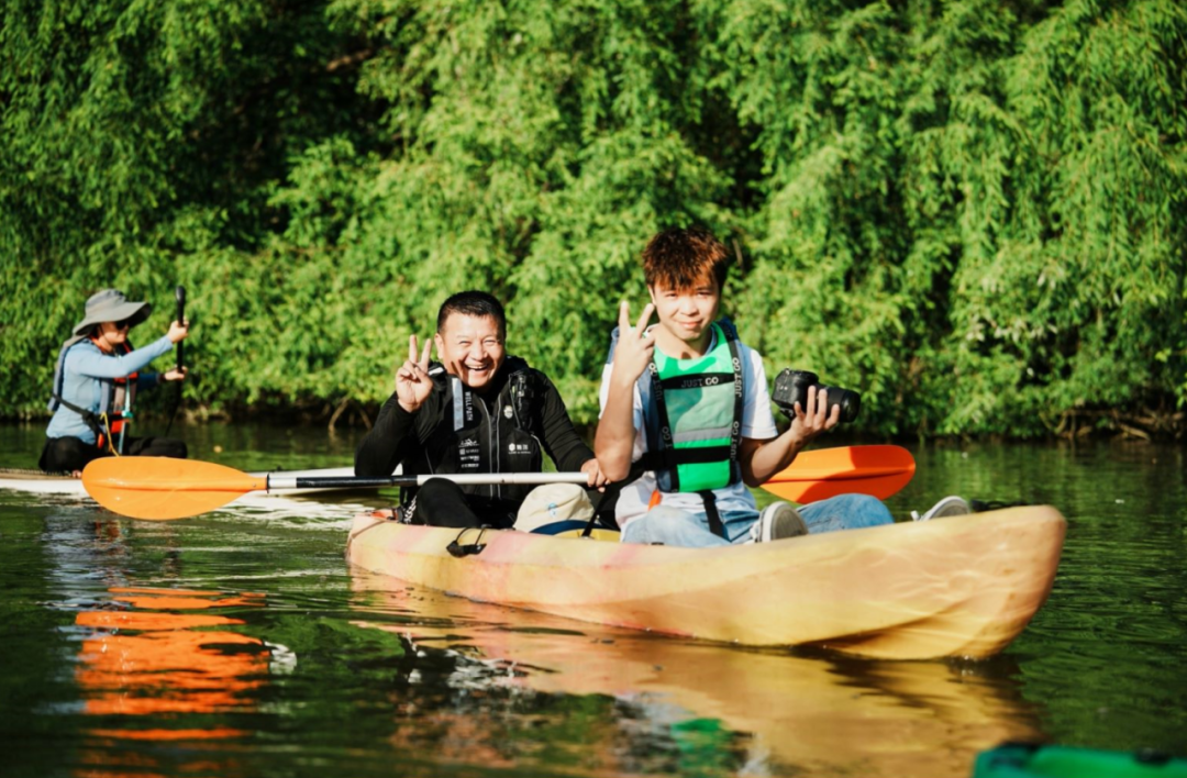 在十八涌水上运动中心乘上皮划艇,慢悠悠划过水道,看河涌旁的榕树在风里摇晃,偶遇掠过水面的飞鸟。