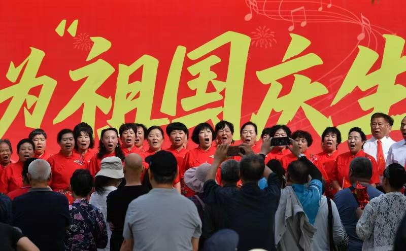 10月1日,国庆假期首日,玉渊潭公园内节日气氛浓厚。上午,"为祖国庆生"主题音乐演绎活动在公园中堤北口开启。伴随着《我和我的祖国》的动人旋律,游客们挥舞手中的国旗,表达对祖国的祝福。