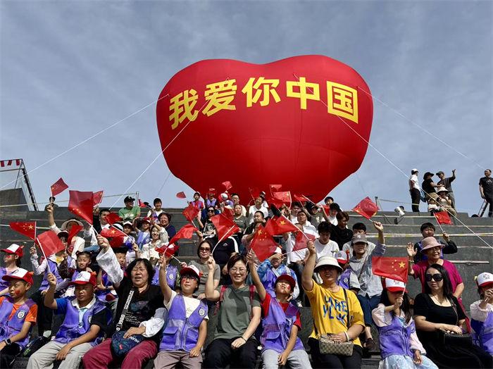 2025年国庆、中秋假期,南苑森林湿地公园迎来最美时节。10月1日,北青报记者在南苑森林湿地公园看到,南森燕景台设置的"打卡燕景台·我的中国心"巨型气膜装置,以醒目造型成为视觉焦点,众多游客站在气膜装置前打卡留念,共同谱写属于南森的红色乐章。