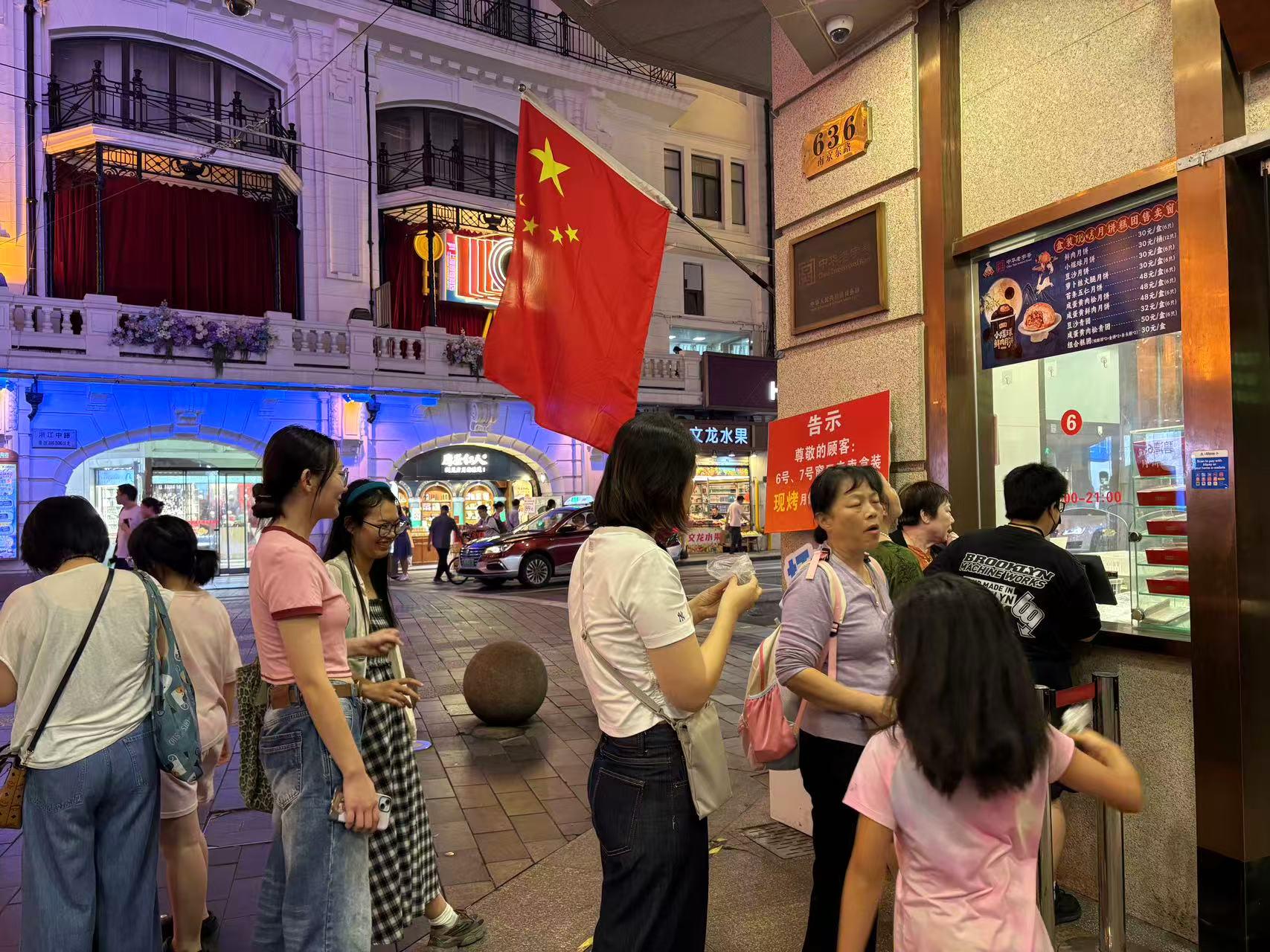 在同属于黄浦区的南京东路,老字号们也选择集体延迟闭店时间。南京东路步行街的沈大成门店内,刚出炉的鲜肉月饼冒着热气,店员赵阿姨忙着打包夜宵套餐。