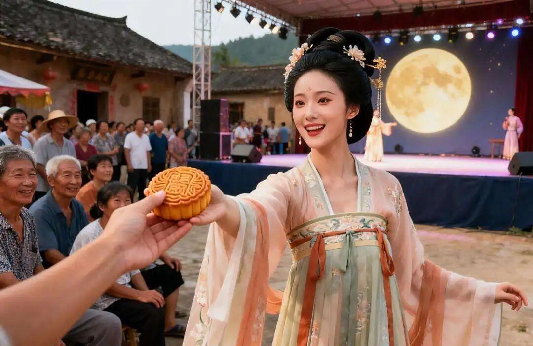 十一遇中秋,嫦娥仙子穿梭街巷,赠团圆月饼送暖心祝福,月色漫古村时,携家人漫步赏景,收下这份专属浪漫,定格难忘中秋记忆!