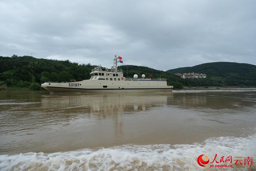 在澜沧江上,中国水上巡逻总队的巡逻船在巡护。人民网 曾智慧摄