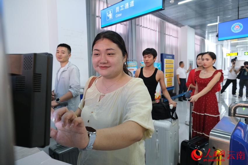 游客在西双版纳关累口岸过关。人民网 曾智慧摄