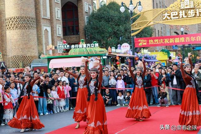 从清晨到夜幕,从热闹的街头到璀璨的灯光,新疆国际大巴扎在国庆当天用它独特的魅力,迎接了来自五湖四海的游客。近 20 万人次的游客量,不仅是对新疆国际大巴扎的认可,更是对新疆旅游市场的肯定。在这里,人们感受到了西域风情的独特魅力,体验到了节日的欢乐氛围,也见证了新疆的发展与进步。