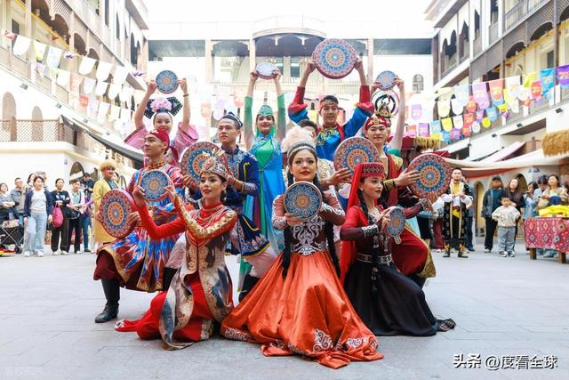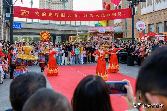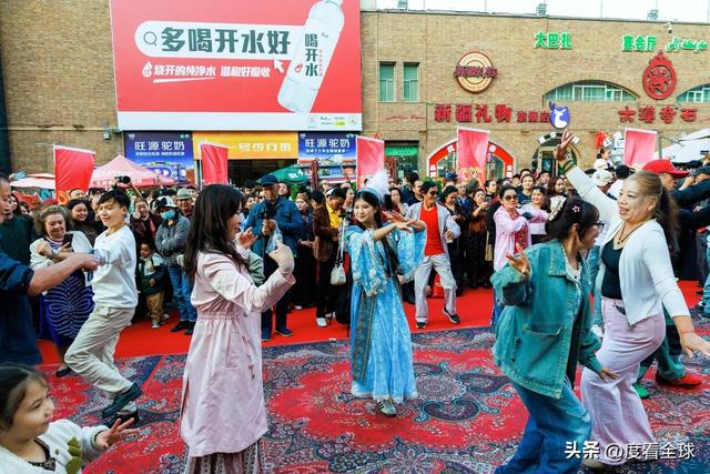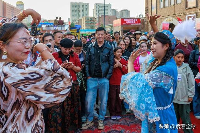 除了浓厚的节日氛围,新疆国际大巴扎在国庆当天还精心准备了一系列特色活动,让游客们在感受西域风情的同时,也能收获满满的快乐。上午 10 点,“我把新疆唱给你听” 快闪活动在大巴扎中心广场正式拉开帷幕。伴随着悠扬的冬不拉琴声,几位身着民族服饰的歌手缓缓走上舞台,一首《新疆是个好地方》瞬间点燃了现场的气氛。游客们纷纷驻足观看,有的跟着旋律轻轻哼唱,有的则拿出手机记录下这精彩的瞬间。随着活动的推进,越来越多的游客加入到演唱队伍中,广场上顿时变成了一片音乐的海洋。
