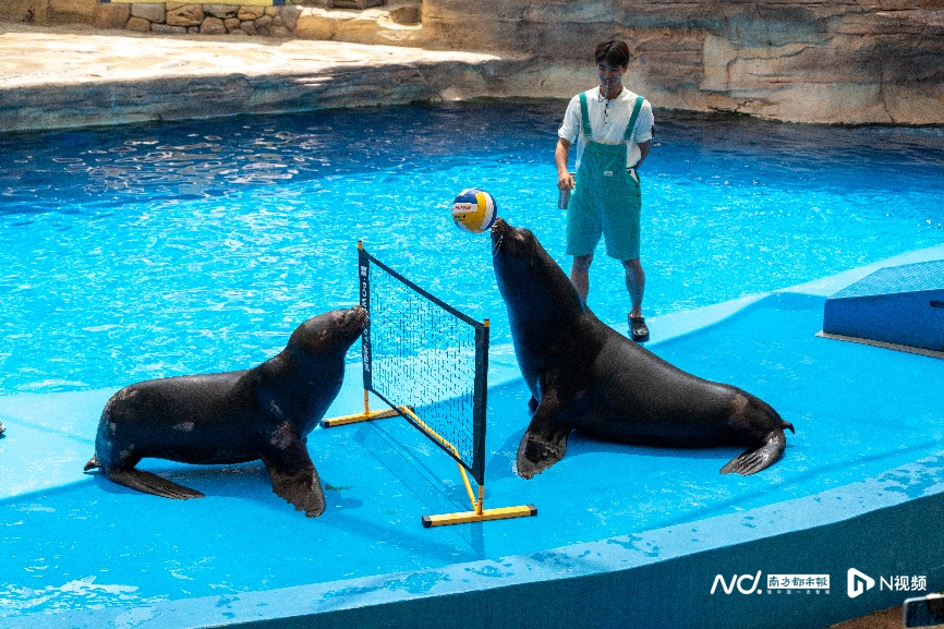 十五运氛围渐浓,广州海洋馆的动物们也加入到运动热潮中。《海豚·精灵之跃》展示中,聪明的海豚展示水中转呼啦圈、投球等高难度动作,而《海狮·逗趣运动会》则带来别开生面的海狮排球赛,这些可爱的海洋动物用它们独特的方式为十五运注入欢乐能量,让游客在欢声笑语中感受运动的魅力。此外,美人鱼演艺融合全运元素备受欢迎,《梦启深海·跃动全运》创新演绎“水中艺术体操”,将体育元素与水下表演巧妙融合,为运动健儿加油助威。