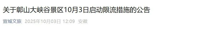 别跑空!安徽这些景区限流 安徽... 01西溪南古村落游客接待限流公告尊敬的游客朋友们:截至今日(10月3日)上午10:30,西溪南古村落...