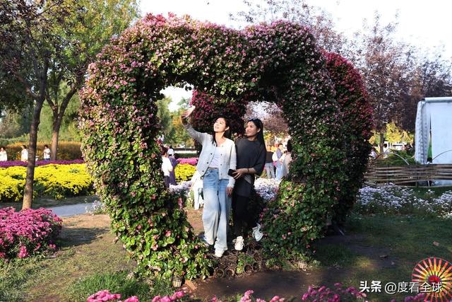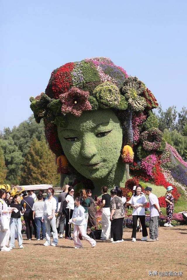 除了大面积的花海景观,园区精心打造的 23 处网红打卡点,更是成为了游客们必到的 “拍照圣地”,几乎每一个打卡点前都排着长长的队伍,大家都愿意花上十几分钟甚至半小时的时间,只为拍下一张满意的照片。“花神归家” 立体雕塑无疑是其中最受欢迎的打卡点之一,这座高约 8 米的雕塑以神话中的花神为原型,花神身着飘逸的长裙,手中捧着一束盛开的菊花,裙摆上点缀着各种花卉图案,在阳光的照耀下,雕塑表面的特殊材质还会折射出淡淡的光泽,显得格外灵动。许多游客都会选择站在雕塑前,与 “花神” 合影,仿佛自己也置身于花的仙境之中。