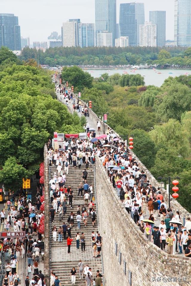 在这个双节假期,明城墙景区同样迎来了客流高峰,截至 10 月 3 日下午 6 点,南京城墙全线接待游客 6.2 万人,与去年同期相比,增长了 34%,这样的增长数据,不仅体现出明城墙景区的吸引力不断提升,也反映出越来越多的人愿意走进历史,感受传统文化的魅力。值得一提的是,为了让更多年轻人了解明城墙文化,景区推出了针对大学生的免费登城政策,假期期间,近万名大学生凭借学生证免费登上明城墙,他们在城墙上漫步、拍照、交流,用年轻人的视角感受历史的厚重,也为古老的城墙注入了青春的活力。