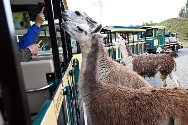 坐上“穿梭动物城”互动观光小火车,在穿越“孔雀园”“尖叫谷”“世界屋脊”“飞檐走壁”“撒丁岛”“青青草原”“沙漠之舟”七大主题区域的过程中,市民游客可以近距离接触野生动物并投喂拍照。