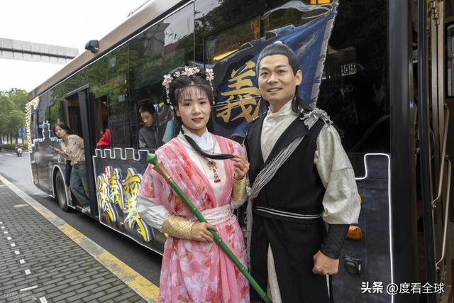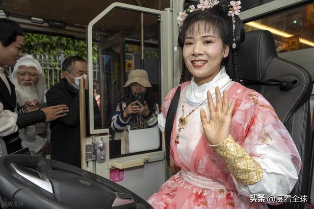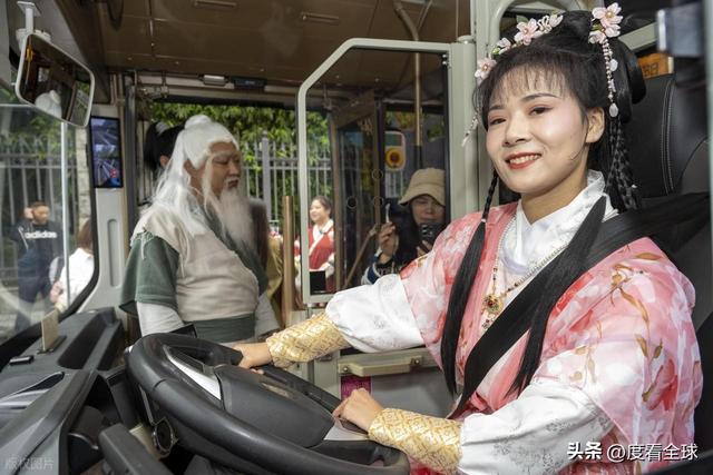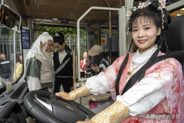 而驾驶座上,一位梳着高髻、穿着鹅黄色衣裙的 “黄蓉” 更是引人注目。她头戴珠钗,手持方向盘,眼神灵动,偶尔还会回头跟乘客们互动:“各位放心,本姑娘的驾驶技术,不比划船差!” 一句话逗得满车厢哈哈大笑。“黄蓉” 的扮演者是襄阳公交集团的驾驶员张莉,为了演好这个角色,她提前半个月就开始研究黄蓉的性格特点,还专门学习了古代女子的仪态举止。“刚开始穿古装开车有点不习惯,裙摆总容易勾到油门,练了好几天才熟练。” 张莉说,看到游客们开心的样子,觉得所有的辛苦都值了。
