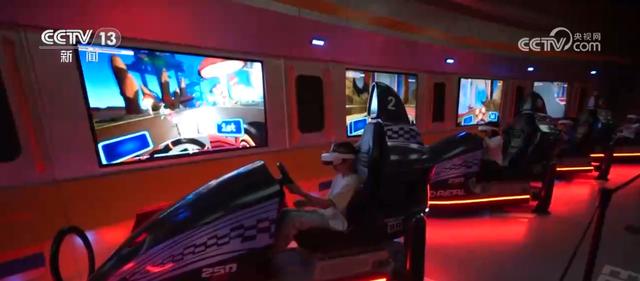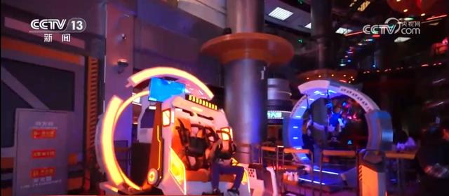 科幻感十足的空间里,既能游览太空、又能通过互动游戏体验“星际穿越”。十余种玩法为游客带来“时空交错”的独特感受。