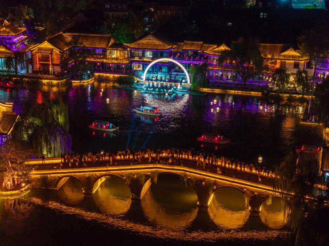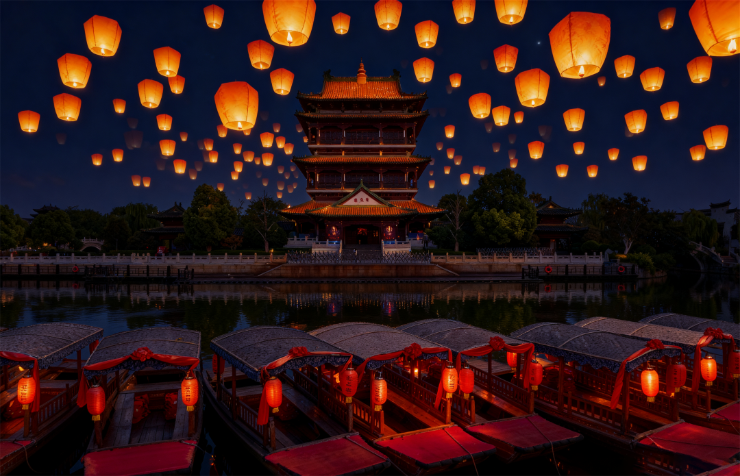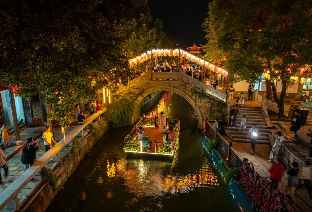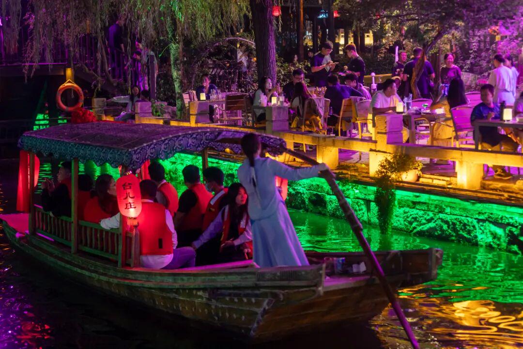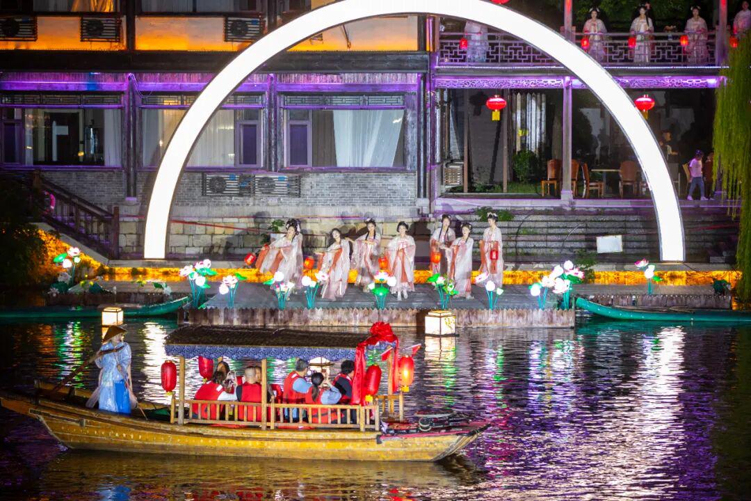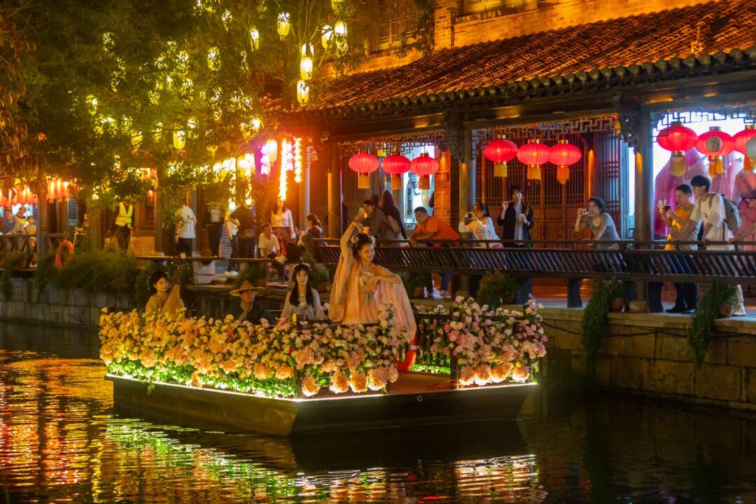 河道被盏盏花灯点亮,悠悠花船载着清音凌波而行。琵琶声起,箫笛和鸣,曲声随水波荡漾,醉了沿岸的柳梢,也醉了每一位听客的心。这不是岸边的静观,而是一场流动的、氤氲着水汽的音画盛宴。