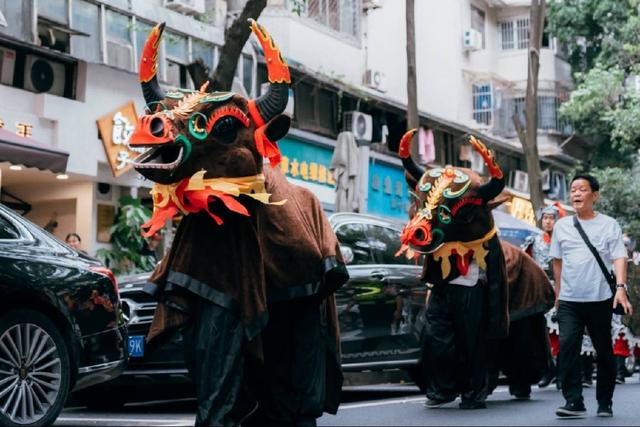 新津古家“火牛”耍成都 游客体... 封面新闻记者 赖芳杰“火牛阵”10月4日,成都市高新玉林的街头,上演了一场传统与潮流、乡土与国际的奇...