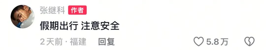 10月2日,张继科在个人社交账号上发布的视频显示,张继科在景区蹲地拍照,下一秒落入水中。在评论区,张继科留言提醒大家:“假期出行注意安全。”