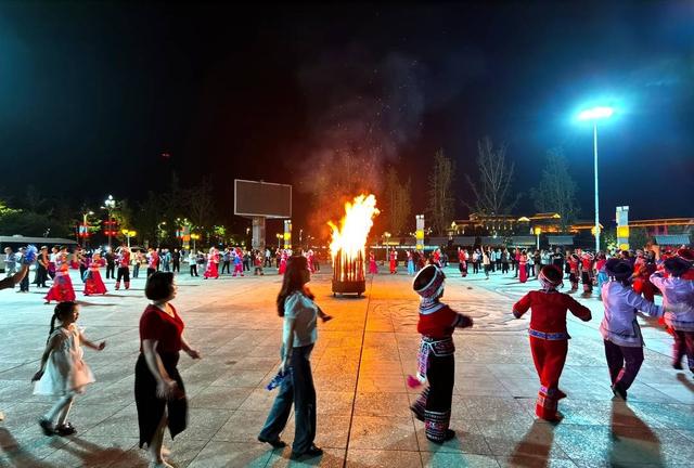 傍晚的桑树坪露营地,全息投影将“巴人射虎”的古老传说投射在崖壁上,电子音乐与巴人战鼓奇妙混搭,游客们围着篝火起舞,仿佛穿越到三千年前那个神秘的巴国时代。