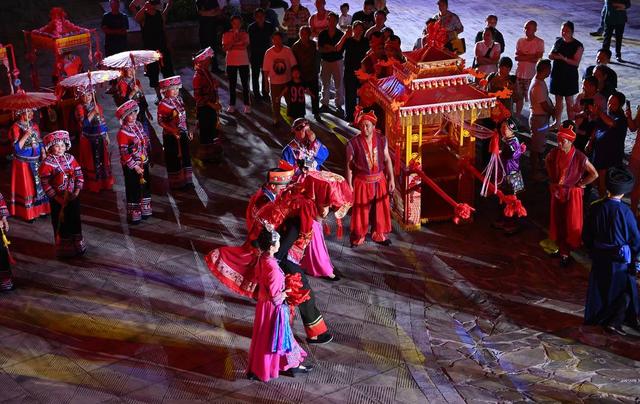 “巴风土韵·喜嫁千年”沉浸式土家婚俗非遗秀定期上演。通过司锣开道、廊桥迎亲、土家三关招婿、哭嫁仪式等环节,完整还原土家族婚嫁的“九礼十八规”。游客甚至可以“客串”土家族新郎官,亲身感受这一古老婚俗。