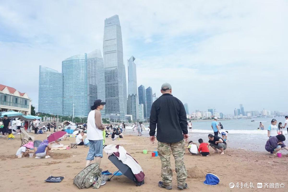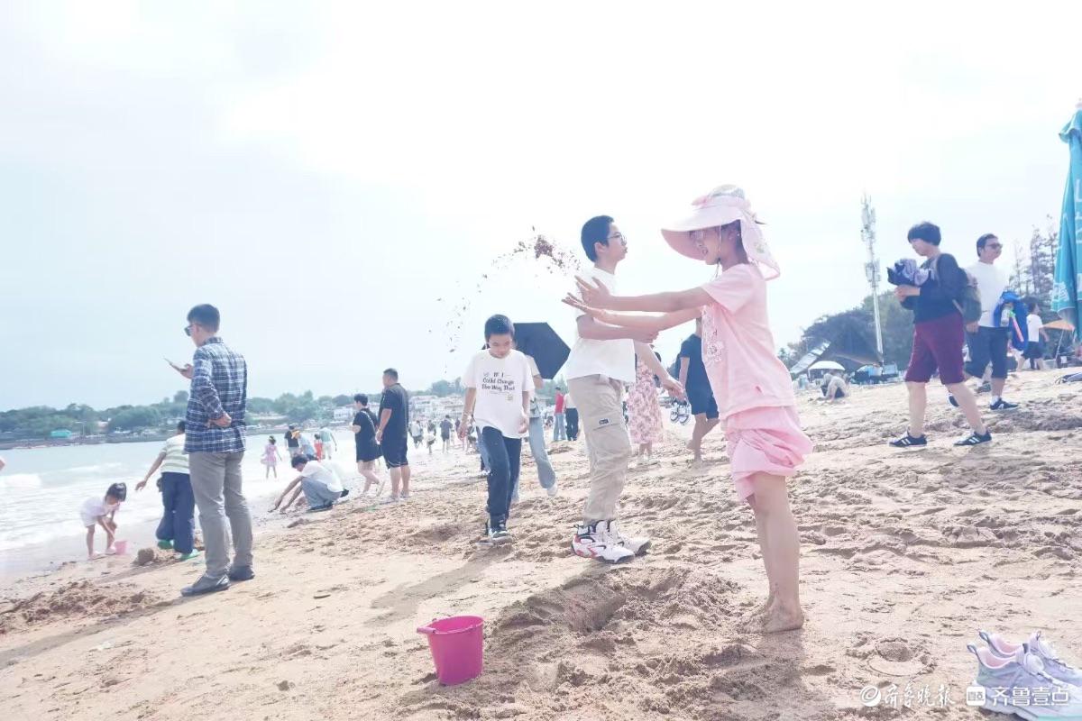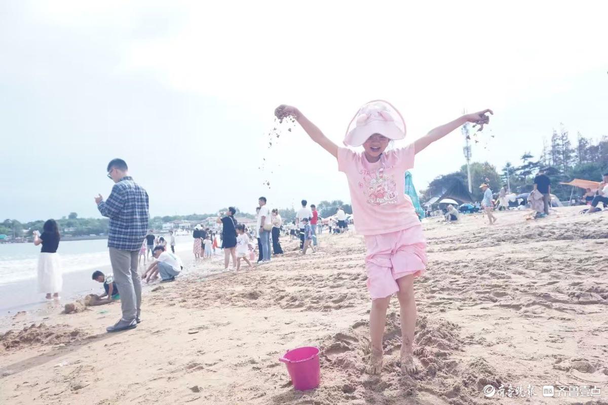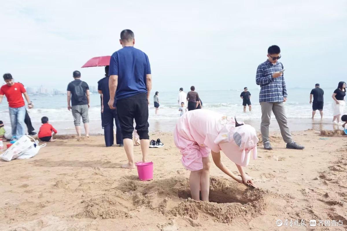 双节拍 | 节日里的海边,玩沙玩水的游客
