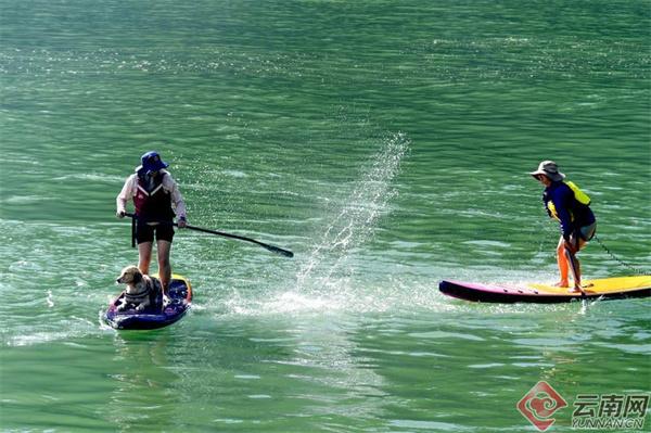 在大理白族自治州南涧彝族自治县公郎镇澜沧江猛龙渡旅游景区,游客体验水上娱乐项目。