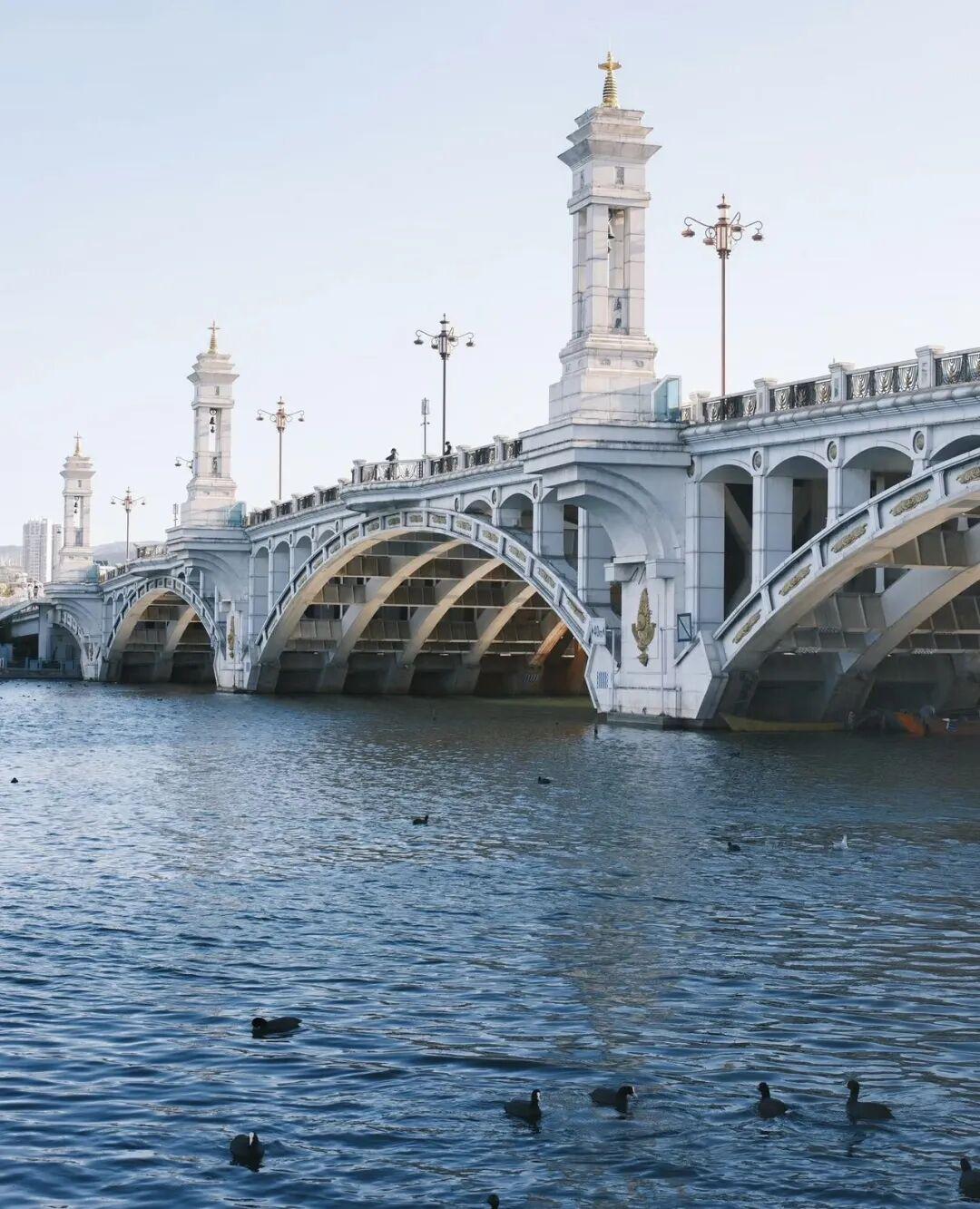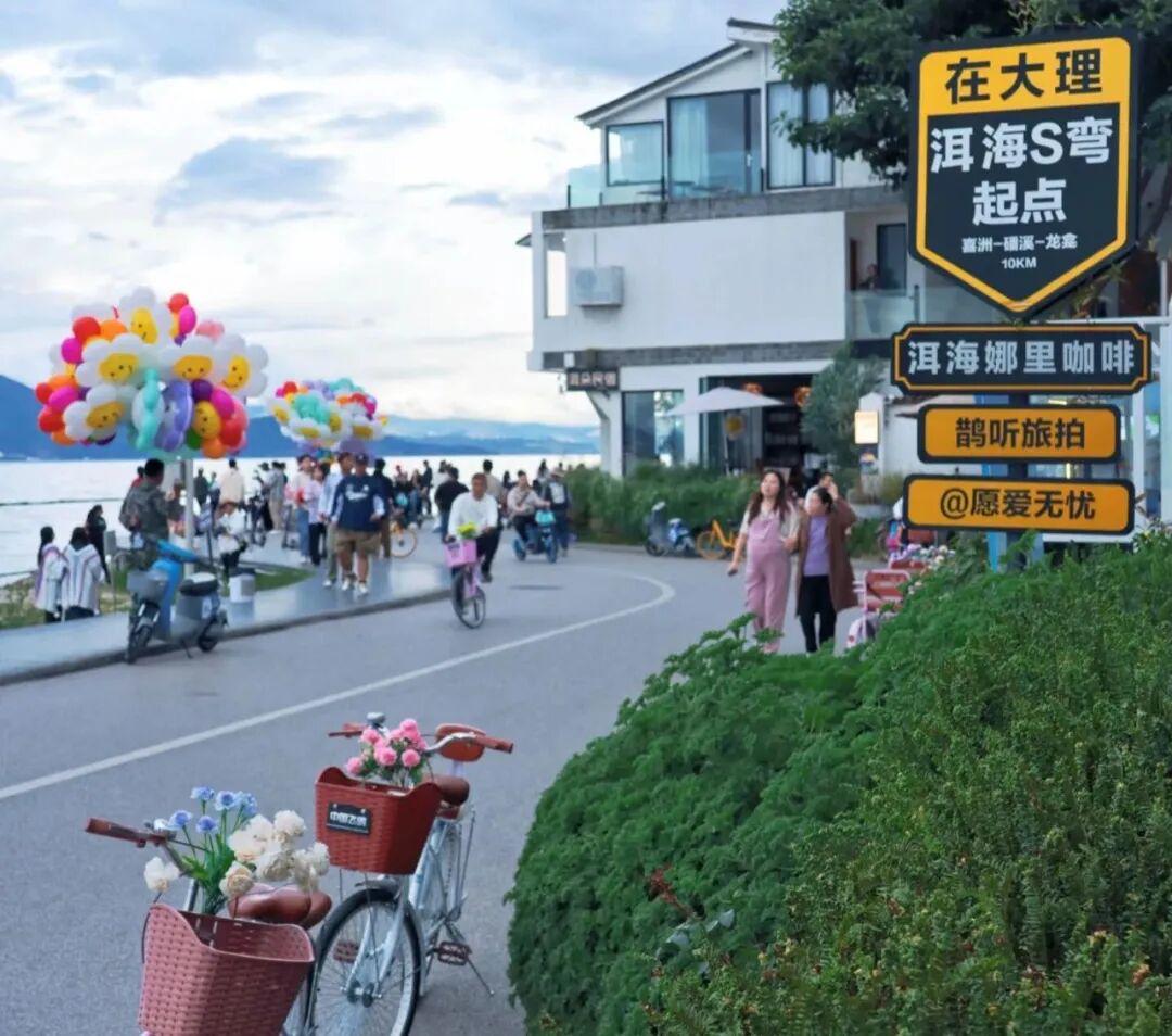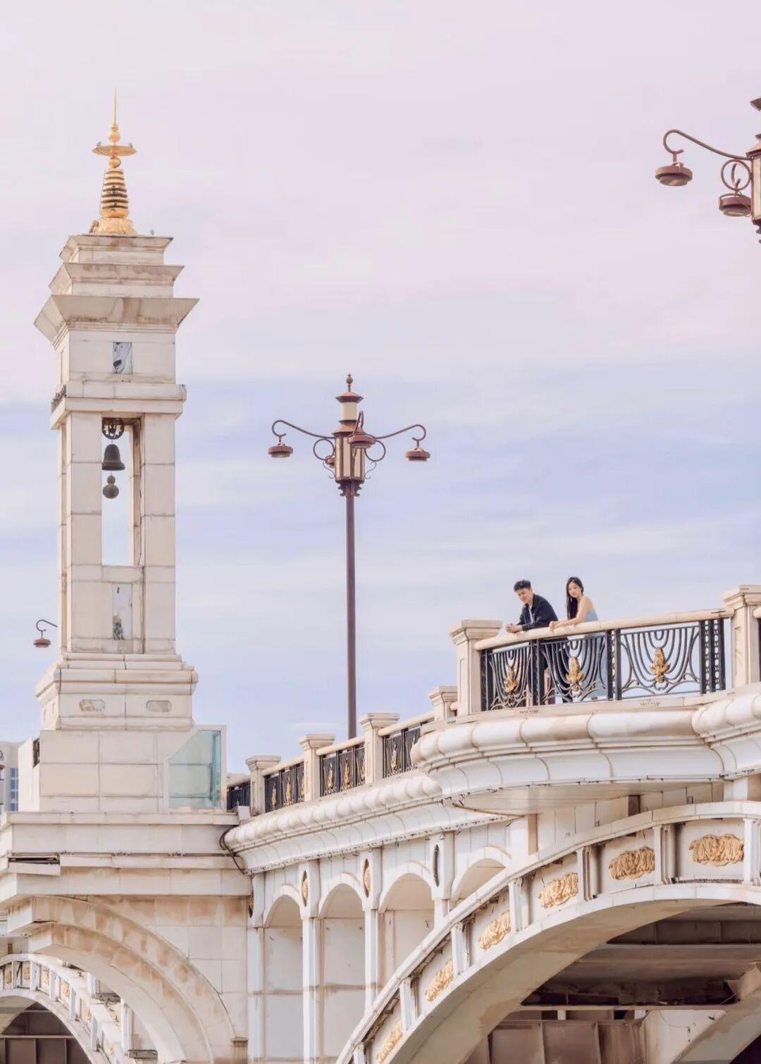 终章浪漫:欧式风格大桥,桥上车流穿梭,桥下洱海碧波荡漾。夜晚灯光亮起,拍“假装在欧洲”的复古大片。