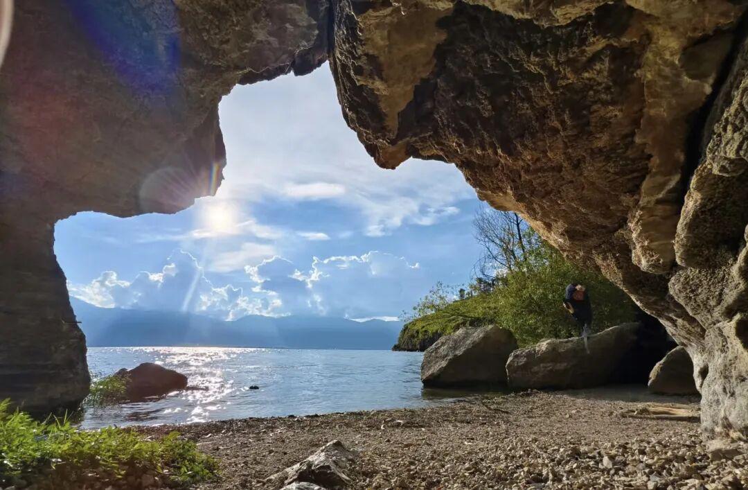 鹿卧山(又名鹿鹅山遗址)位于大理洱海东岸的挖色镇康廊村西南,三面环海,拥有悬崖峭壁、细腻沙滩、神秘洞穴和孤独枯树等自然景观,与苍山洱海构成如画美景,是摄影、历史爱好者及独行者的私藏秘境。