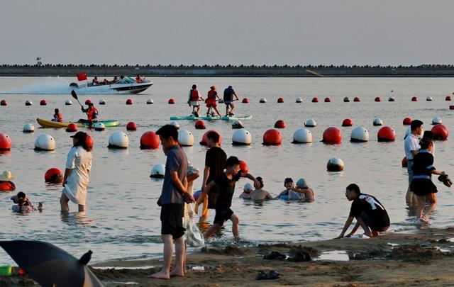 今年十一双节期间,在金山城市沙滩,市民游客纷纷前来游玩乐在其中。
