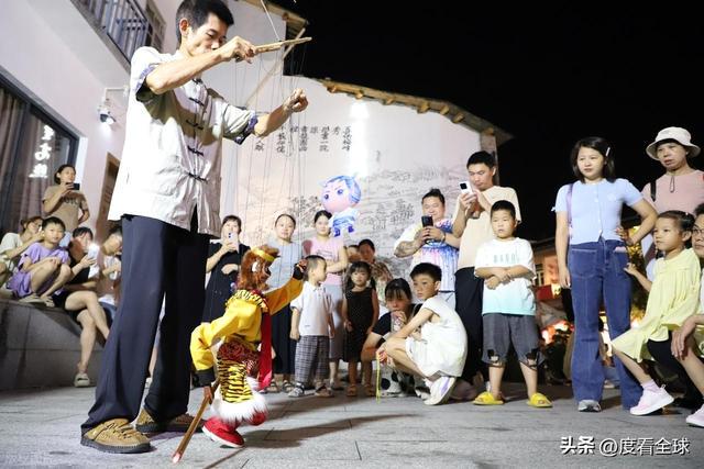 在古街中段的儿童游乐区,泡泡秀表演吸引了许多小朋友。表演者用特制的工具吹出巨大的泡泡,阳光透过泡泡折射出七彩的光芒,小朋友们在泡泡中奔跑、嬉戏,笑声传遍了整条老街。来自泉州的游客郑女士说:“带孩子来这里玩,不仅能让孩子感受传统文化,还能让他们尽情玩耍,真是太贴心了。”