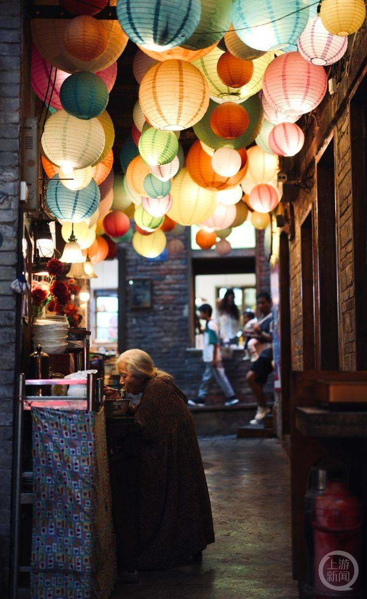 除了影展,山城巷的小店同样热闹。游客们徜徉在古色古香的巷道里,从手工银饰到老重庆糖画,从复古明信片到手冲咖啡,每一家店都藏着故事。